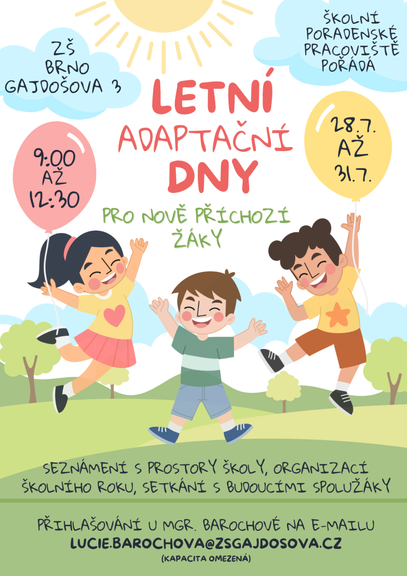 Základní škola, Brno, Gajdošova 3 pořádá letní adaptační dny pro nově přijaté žáky školního roku 2025/2026.